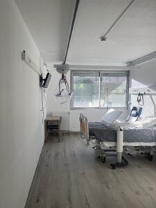 La Clinique de Tournan met à disposition une chambre adaptée aux personnes à mobilité réduite (PMR) au sein de son service de médecine polyvalente. Cette chambre a